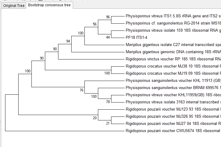 我想鉴定一个真菌的种属,选了NCBI里面相似度排在前面的一些菌,画了进化树,第四个是我的菌,和同属一个分支的另一种菌的分数只有44,好像有说70以上才可信,我这样能确定我的菌的种属吗? WM){}IZEVFL7SQU6O$1E%BG.png |