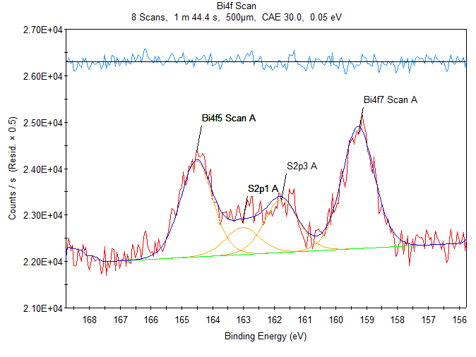 各位大神请帮我看看这个XPS图是什么意思啊,我做的是铋层的薄膜,这个是不是说明Bi已经有两个价态了,应该如何处理啊