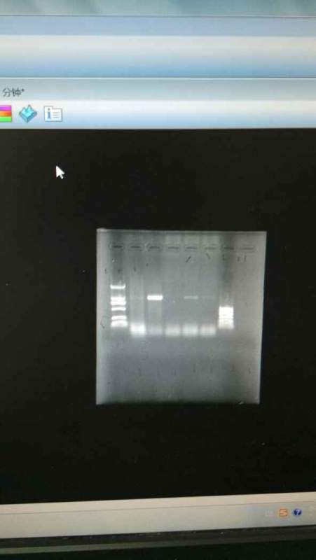首先,最下方的是二聚体,PCR常见的问题,因为用酶不当,酶的特异性灵敏度不高,配置体系虽然在冰上也难以避免产生二聚体(可以用热启动Taq酶,可以先了解一下原理) 其次,胶浓度是多少,marker好像没有分离开,, 最后,你的目的片段出来了吗。。。应该没有出来吧,上方最亮的那条带应该不是目的条带 吧,,,, PCR标准操作流程: http://www.detaibio.com/topics/pcr-sop.html 热启动Taq酶的原理: http://wenku.baidu.com/link?url=MdqQTlGAtQFbBE3HCutlKDyS_iNwkJkMLeiIheIMFjVGuMGxE_sykvWv9zNYSAHtZmOt_kWuxFIMe6hjfoEt6D60-TBn_KAEF2NJnh03ORK |
