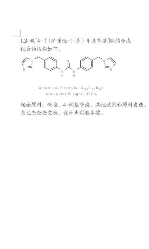 求助 药物合成 1,3-双[4-(1H-咪唑-1-基)甲基苯基]脲