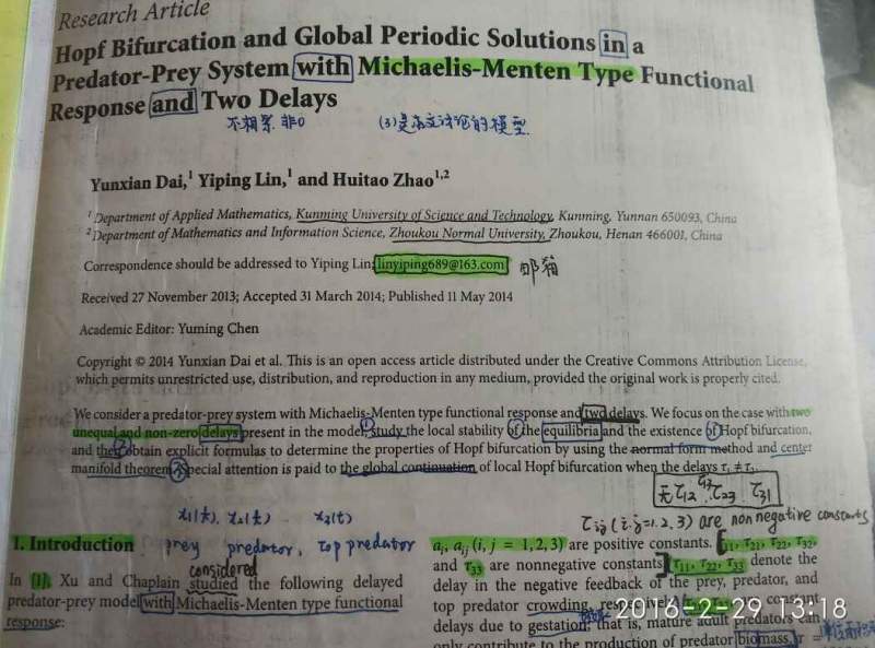 这个不是问题的问题一直困扰着我,情况如下: 我去年读的一篇文章,下面有配图,我个人觉得写的很好,它是研究三个物种之间的互相捕食的问题,这篇文章是我自己找的,但导师看过后说这篇文章发表的杂志是垃圾,三千块钱就能发一篇,是被sci剔除的。 我也看过同样类型的文章,但是都是两个物种的,比这个简单很多,都发的sci。 我纳闷的地方是,为啥这篇文章的作者不发sci?一直觉得这是一个不是问题的问题,也就一直没有给作者发邮件,但是心里没有合理的解释,总觉得纳闷 发自小木虫Android客户端 |