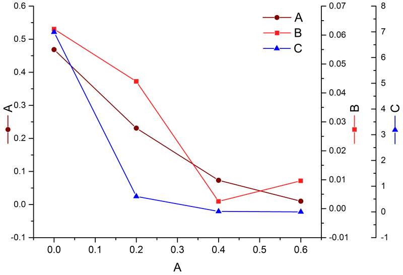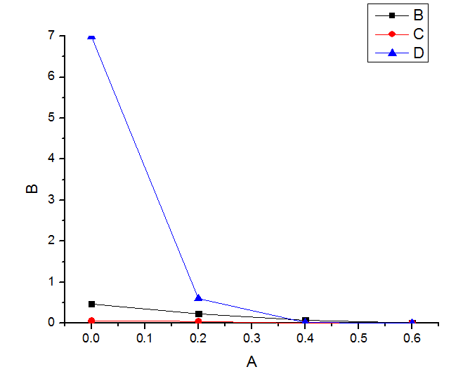 三组数据有相同的横坐标 但纵坐标数量级差很大 数据是这样的 X Y(1) Y(2) Y(3) 0 4.684×10-1 6.206×10-2 6.990 0.2 2.309×10-1 4.400×10-2 6.023×10-1 0.4 7.335×10-2 2.516×10-3 1.956×10-2 0.6 1.015×10-2 9.618×10-3 4.027×10-5 想把三组数据画在同一张图里,困扰很久了,真心不会画,求帮助。 |