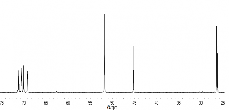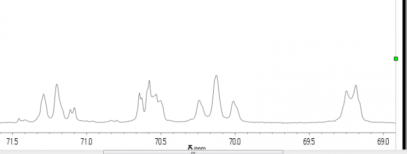 求大神帮看一下核磁碳谱(13C-NMR)70ppm处感觉咋裂分了呢?不是去耦了吗?已有1人参与