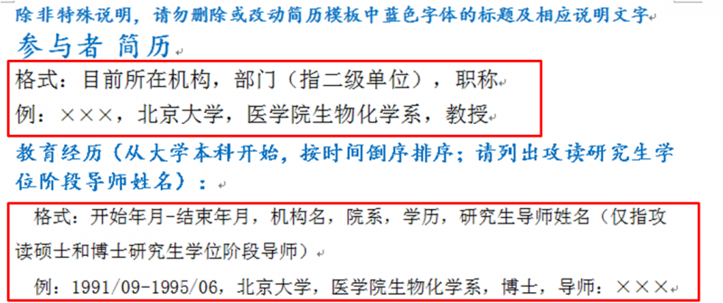 请教大家一下,参与人模板中 “请勿删除或改动简历模板中蓝色字体的标题及相应说明文字”这句话,“相应说明文字”指的是标题后面括号里的蓝色文字,还是下面的具体的“格式和例子”?换句话说,模板里面关于格式所举的例子,可以删掉吧? 谢谢! 图片1.png |
