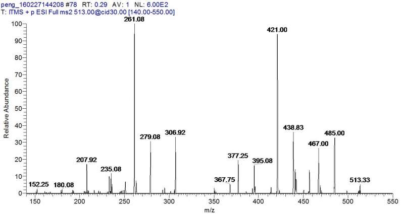 掉下来N-O上的氧,加氢加钠峰,带两个电荷,513-16+2+23=522。522/2=261。