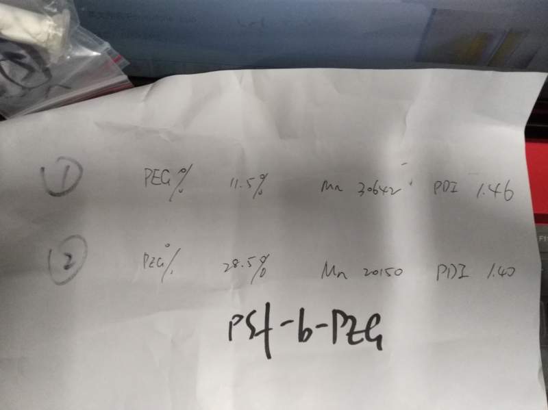 PSf-b-PEG是什么高分子,如下图所史,名字叫什么,和PS-b-PEO一样么????顺便问一下聚环氧乙烷和聚乙二醇是不是一种东西,还是只有聚合度上的差别,急求懂的人说一下 ps-b-peo.jpg |