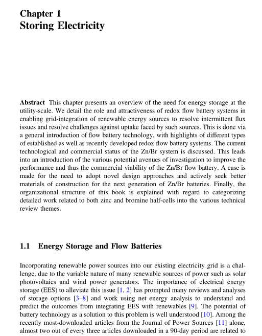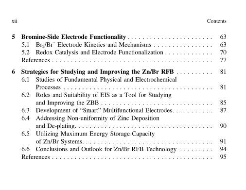 The Zinc/Bromine Flow Battery Authors: Gobinath Pillai Rajarathnam, Anthony Michael Vassallo ISBN: 978-981-287-645-4 (Print) 978-981-287-646-1 (Online) |