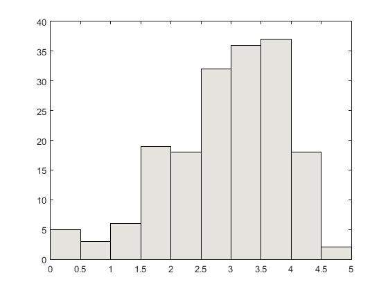 各位大神,请问MATLAB中,用ecdfhist画直方图时,怎么改变直方图填充的颜色?一般来说都是蓝色的,我想把直方图填充成浅灰色的。希望各位大神尽快帮助。 附上一组数据: 1.9361 1.9666 2.4434 2.1720 2.3271 3.0732 3.0476 3.3644 2.8970 3.5018 2.6486 2.8391 3.8112 3.5723 3.6327 3.7398 1.1123 1.6829 1.1084 1.8781 2.4784 2.3703 2.5436 2.9117 3.0093 3.6210 3.5997 3.8715 4.0596 3.9594 4.2326 4.4421 2.0426 1.9598 1.7829 2.3269 2.6344 3.2007 3.5726 2.8789 3.7946 3.9264 3.6178 4.1432 4.1128 3.0339 3.8457 4.2389 0.2659 0.8170 0.9322 0.2724 1.6682 1.9949 2.4765 2.6969 3.0730 3.3369 3.1277 3.5209 3.1906 3.0461 3.5365 3.6911 1.7233 1.9824 2.3391 2.6921 3.3389 3.8021 4.0096 3.9381 4.0936 4.3063 3.4263 3.9113 4.2053 3.5058 1.6719 3.3668 1.0426 2.7107 2.8835 2.9016 3.4957 4.1216 4.3929 4.4567 4.4079 4.6308 3.9565 4.4757 4.6352 3.8822 3.7408 4.1319 1.6482 1.1913 1.8416 1.7265 3.1344 2.5292 3.4831 2.8822 3.2889 3.5763 2.7897 2.3749 4.0796 2.8720 2.7676 3.9841 1.5064 1.5846 2.5601 2.7690 3.0540 3.3864 3.3314 3.4082 3.7758 3.5774 2.5470 2.6623 3.4591 2.7321 3.0444 0.0000 2.6386 2.0237 1.9687 2.2662 3.0841 2.8774 3.2829 3.2293 3.3679 3.7036 2.1396 2.9645 3.7723 3.4524 3.4771 3.7186 1.8067 1.8769 2.7062 2.2348 2.9508 3.2861 3.6660 3.5541 3.7681 3.9395 2.6221 0.0000 4.2748 2.7904 2.2548 3.5082 0.4932 0.8654 1.2553 1.3484 2.1721 2.0365 2.5223 2.4793 2.8839 3.1397 3.4691 3.5914 3.4088 2.5514 3.1214 3.4380 |