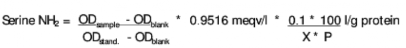 1.在OPA法测定蛋白水解度的“h=”公式中,分子上有一个无量纲数“100”是什么? 2.样品的OD值一般为多少正常?我测出来的在0.2-0.3左右,按公式计算水解度不对,达到了300% 屏幕快照 2016-03-03 下午4.55.02.png |