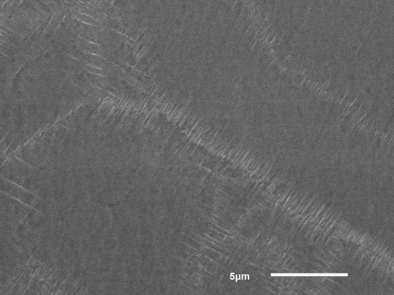 β钛快冷会形成a''相,也有可能是热应力完成的孪晶。从这个高倍图看很像前者相。