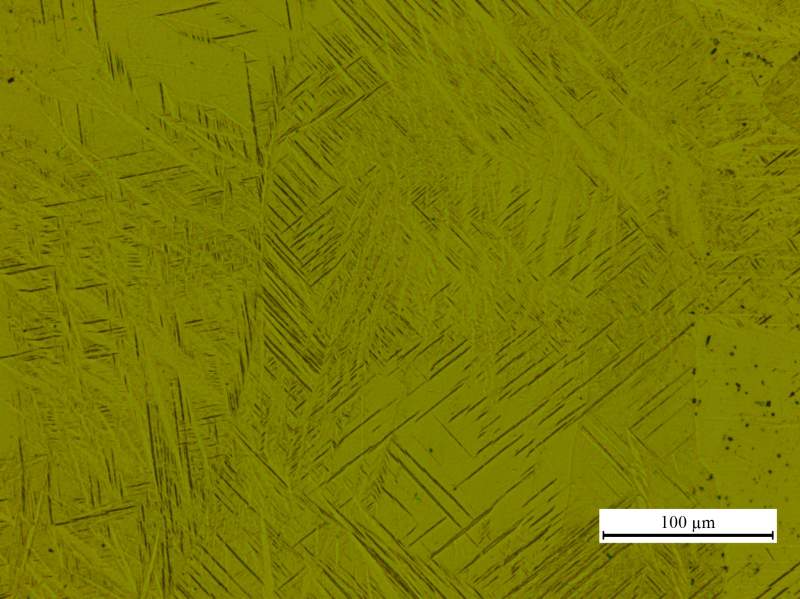 固溶处理一块激光熔化沉积的TB6钛合金,随后冷却,冷速应该与油冷接近(冷速估值是因为是10mmx10mmx10mm的小块空冷)。