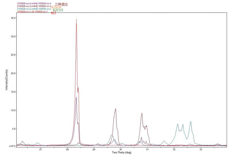 KCl、K2SO4、K2CO3混合后,XRD为什么没有K2CO3碳酸钾的峰了?