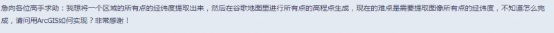 急向各位高手求助:我想将一个区域的所有点的经纬度提取出来,现在难点是如何全部导出该区域的所有点的经纬度,不知道怎么做,请问arcgis如何实现,非常感谢! 3OLB(MFML845[%Y~HTZQEG3.png |