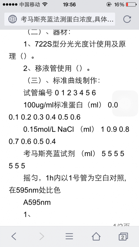 [交流]请问一下考马斯亮蓝做蛋白标准曲线时,用氯化钠和蒸馏水什么区别呢?谢谢