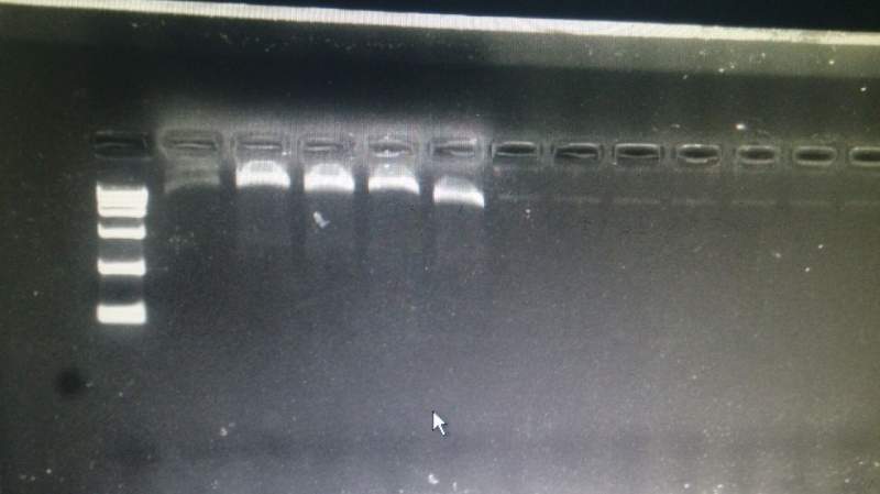 你这个会不会没有切开呢?胶污染,常换新的电泳液,注意保持各用具的干净,另外,你的maker是不是上得也太多了。