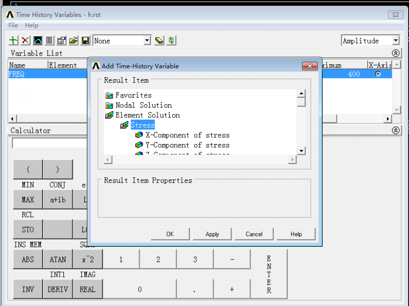 ANSYS谐响应分析后如何查看某截面应力随频率的变化