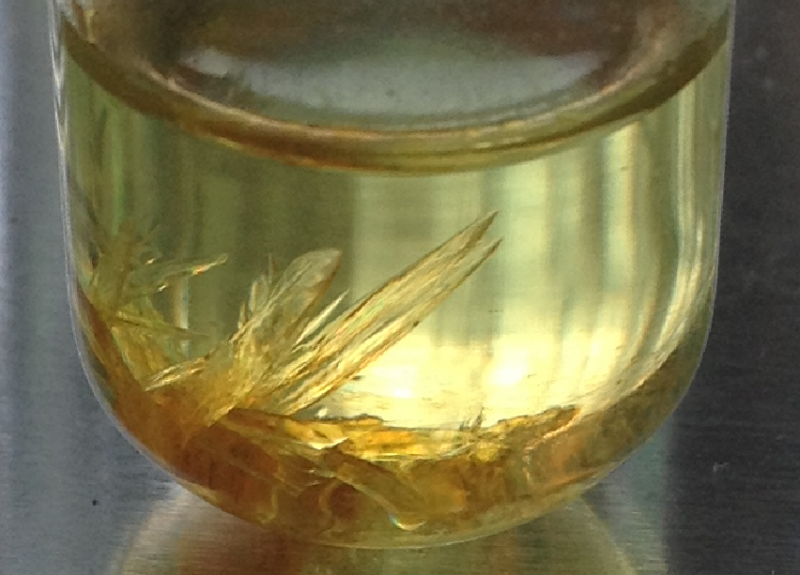 试管挥发法 试管挥发法制备晶体。在液面下晶体析出 1.实验步骤:扩散法如果不出现晶体。将试管的溶液敞开,待溶剂挥发干净既可以实现晶体的析出; 试管挥发法的优势: 2.试管挥发法过程缓慢,保证晶体质量,缺陷少。 溶剂挥发过程中,液面到了底部后,挥发速度变得最慢。 每天可以观察晶体的析出。为观察到晶体的生长提供了时间。 3.试管挥发法之前,我们采用熟悉的扩散法。 首先为晶体生长做出了一个尝试,扩散均匀后如果得不到晶体; 扩散法:制备晶体比较直观并且得到的晶体质量好,缺陷少,包夹溶剂的情况比较少。 缺 点:时间长 解决方法:扩散法+试管挥发法(此帖是两者联用),扩散法+扩散法(二次扩散法)。 将试管的塞子拿掉挥发溶剂,就是试管挥发法,这样做的好处是提高晶体生长的几率。 如下图所示的就是试管扩散法生长出的晶体。 这个晶体已经发表到如下帖子,当时并未给出实验步骤http://muchong.com/bbs/viewthread.php?tid=9255720 晶体的光学图片 [ Last edited by 11900490 on 2016-3-8 at 10:45 ] |