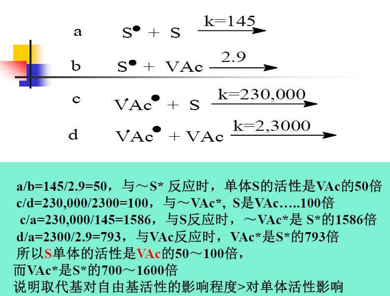 自由基聚合时,为什么醋酸乙烯比苯乙烯难聚合 已有2人参与