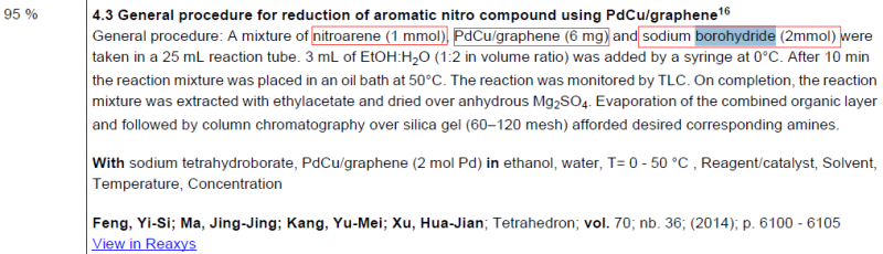 微米纳米板块里经常有人问如何制备贵金属纳米粒子溶胶,本人根据个人经验,稍加总结。宗旨是通俗易懂,一眼就能看明白。所以做的很简单,简单的只有图。 1.贵金属纳米粒子的制备,参考文献如下: AgorAu NPs.png 201210311681.jpg 201210311697.jpg 2.表征的方法是UV-vis光谱 + TEM: ![]() Ag NPs ![]() Au NPs http://muchong.com/bbs/viewthread.php?tid=10002145 3.性质:SERS+催化 SERS检测:贵金属纳米粒子是SERS基底材料,检测很多有机分子。 催化还原反应:Ag/Au NPs catalyst可以实现硝基苯还原为苯胺; 催化开环反应:同时贵金属纳米粒子还可以实现开环反应,如下所示: Ag/Au NPs catalyst.png [ Last edited by 11900490 on 2016-3-12 at 09:18 ] 贵金属纳米粒子(AuAg_NPs)的制备及其催化性质[ Last edited by 11900490 on 2016-3-12 at 10:57 ] 催化性质如下图所示!!!! 罗丹明B的硼氢化钠还原+催化剂Au NPs Plot of the decomposition percentage (%) of RhBversus time (min) catalyzed by Au–PANI nanocomposites obtained at different reaction periods. The concentrations of RhB and NaBH4 are kept constant. Plot of the decomposition percentage (%) of RhBversus time (min) catalyzed by Au–PANI nanocomposites obtained at different reaction periods. The concentrations of RhB and NaBH4 are kept constant. [ Last edited by 11900490 on 2016-3-19 at 17:03 ] 贵金属纳米粒子还原硝基为氨基苯 QQ截图20160324082204.png QQ截图20160324082249.png QQ截图20160324082513.png QQ截图20160324082600.png QQ截图20160324082620.png QQ截图20160324082634.png QQ截图20160324082645.png QQ截图20160324082654.png [ Last edited by 11900490 on 2016-3-24 at 09:01 ] |