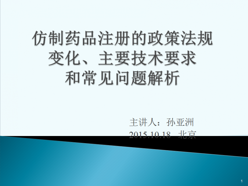 仿制药品注册的政策法规变化、主要技术要求和常见问题解析—孙亚洲2015.10.18