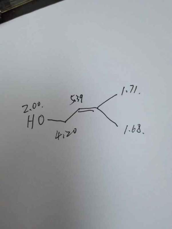 | 已知化合物分子式C5H10O,IR图:在3400cm-1处,在1640cm-1.....,1HNMR:1.68(s.3H);1.71(s,3H),2.00(s,1H);4.20(d,2H),5.39(m,1H),写出其结构式?~本题怎么解,题目有没有问题,求助各位好心的虫友。 |