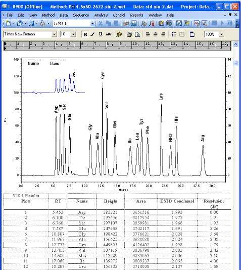 近日实验室的L-8900全自动氨基酸分析仪柱效下降了,满足不了使用,然后果断出手自行装填了一次! 先看重装图片: 分离柱装填装置.jpg 装柱工具.png 柱效下降后的图.png 自行装填后的图.JPG 测试后,自行装填的L-8900全自动氨基酸分析仪分离度最小的1.6.远大于要求的1.2 |