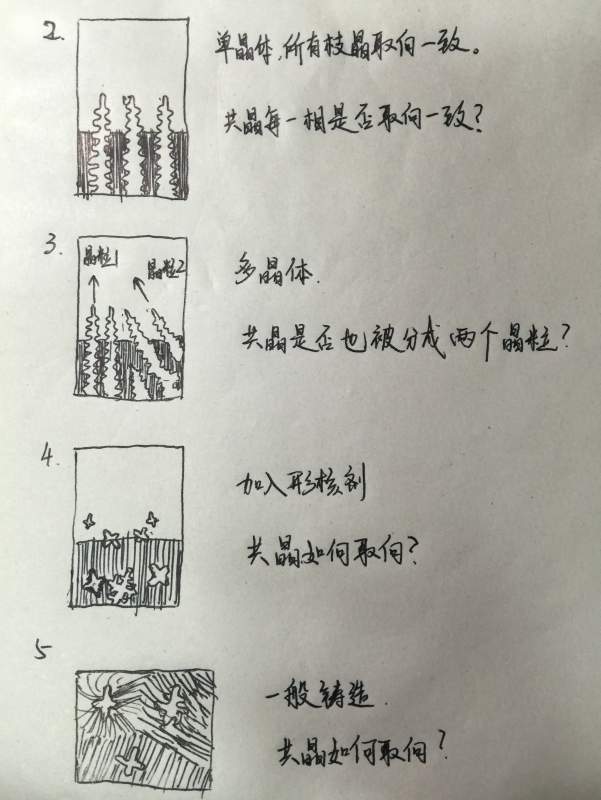 首先感谢你的回答,可能我有些问题没有描述清楚,我这里再解释一下。 第二个问题:我的意思是如果整个样品内的所有枝晶取向一致,是一个单晶,比如单晶高温合金,那么整个样品内共晶的取向都一样,还是和枝晶没关系? 第三个问题:我的意思是如果整个样品是由几个取向不同的柱状晶构成,每个柱状晶内有若干树枝晶,那么整个样品内的共晶取向是怎样的,是否也被几个柱状晶分开成不同晶粒? 第四个问题:这个问题加入形核剂的初衷是为了使初生相在固液界面的前沿随机形核,等轴生长,而共晶依然定向生长,考察二者的取向关系? 第五个问题:与问题四对应,这里是初生相随机形核生长,共晶依附在初生相上也做等轴生长。最终组织为中心为初生枝晶,周围是共晶的等轴晶,考察二者的取向关系。 |