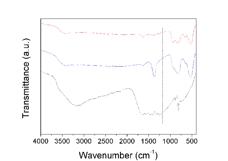 在做出来的红外光谱上发现了奇怪的现象,求大神分析! 下图是由上至下依次是AgVO3、AgVO3/g-C3N4(50wt%)、g-C3N4的红外光谱。g-C3N4的红外光谱和文献上的差不多,但复合物的光谱中1200-1650之间那些峰几乎都不见了,只剩一个在1361cm-1的一个,这是为什么呢? 求大神们解答,跪谢! Graph2.gif |