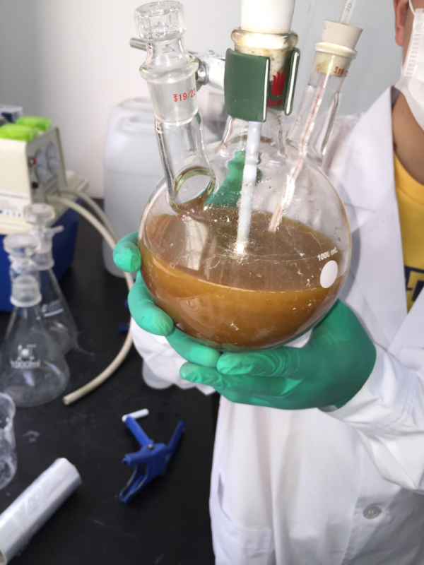 制备石墨烯的时候最后出的成品是咖啡色,其中有金色石墨烯,但是也有黑色的颗粒。想问一下是不是未氧化的石墨,如果是的话应该怎么处理。工艺是低温段冰浴100ml硫酸加2g石墨加1g硝酸钠搅拌1h,再缓慢加入6g高锰酸钾搅拌1h。中温段35度搅拌2h,高温段加入100ml水升到95度再搅拌15min,移去水浴降到室温滴加双氧水,很奇怪并没有产生大量气泡…而且高温阶段液体就从墨绿色变为棕色了。最后清洗超声分散后如图。 发自小木虫IOS客户端 |