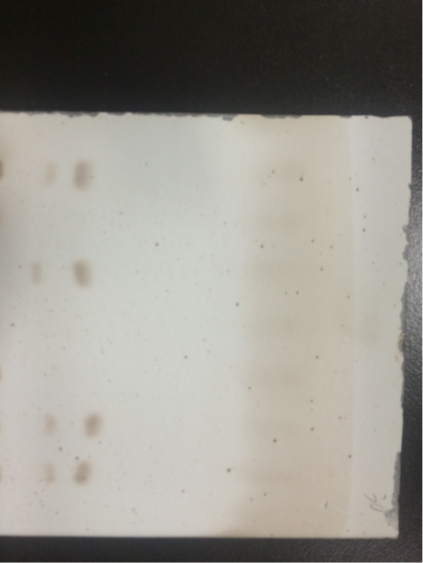 我后来都不点样,直接喷显色剂,然后加热,还是有黑点,从别的实验室拿了两块板同法操作也还是有黑点,最后用新的硫酸铜和磷酸再配了显色剂,依然有黑点,把显色剂用0.45微米滤膜过滤后喷上去还是有黑点…我现在已经混乱了…原来觉得是薄层板质量问题,现在别的实验室的板也那样,总不能质量都有问题吧… 发自小木虫IOS客户端 |