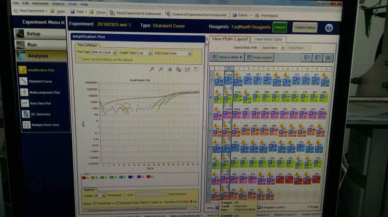 | 老师们好,请给我指点一下:我用StepOne做种子转基因检测,经常出现荧光强度曲线与CT值不一致,不知道问题出在哪里,曲线图明明就是阳性,可是CT值却是40,我做判定的时候以哪个为主才好呢?另外发现实验室nos终止子的探针引物用完了,我就用纯水稀释,然后加入板中。试验结果:nos终止子出峰线(出现典型扩增曲线),探针引物可经常稀释来用吗?谢谢! |
