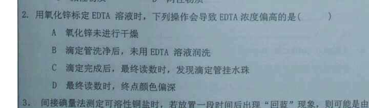 D,理由和B差不多:颜色加深,说明滴加体积也多了,测得值偏低。