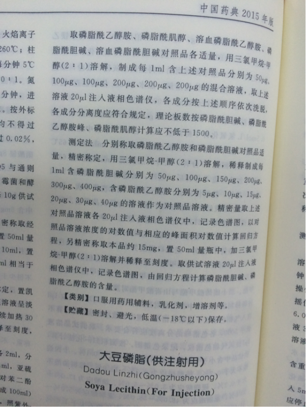 易善复(多烯磷脂酰胆碱)质量标准中的问题