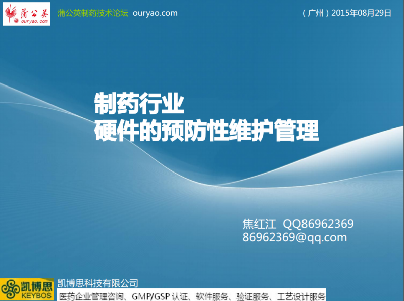 制药行业的硬件的预防性维护管理—焦红江2015.8.29