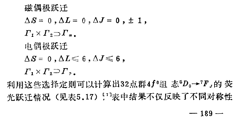 张思远老师的《稀土光谱理论》中有讲到能级间跃迁的选择定则里都包括有 δS=0 但是紧接着又根据这些定则列举了5D0--7FJ 的跃迁情况。。5D0 的 S=2 ; 7FJ的 S=3 不就不满足 δS=0 真心不懂额。难道是我理解错了。。。 求大神赐教。。。 捕获.PNG |
