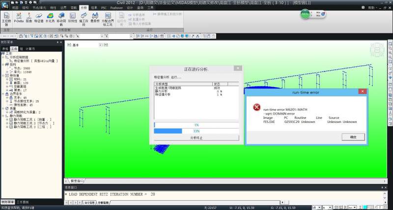 Midas模拟拱桥抗震分析,但在动力特性分析时模型就出问题了,求大神帮忙!!!