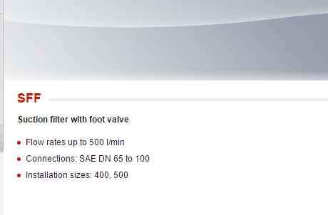 流量450L每分钟,压力35MPa,我看hydac产品中SFF吸油过滤器的介绍,百思不得其解。如图,SEA DN65-100什么鬼,是工作压力吗。求指点迷津。 发自小木虫Android客户端 |