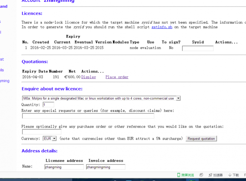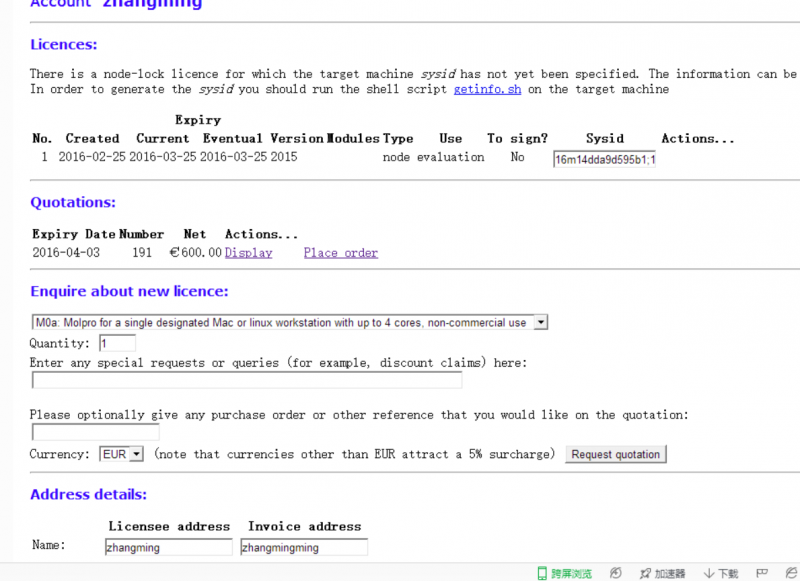 各位大神,你们好! 本文在molpro官网申请试用版的license,getinfo.sh文件已经产生了,但是当我把Sysid输入后,为什么没有.token产生啊???求解,这里先谢了。。 OA6ENK)N3BNWI[4)@F2M]`9.png 9B7(SYN[3WQ{J7JU`URDXFA.png |