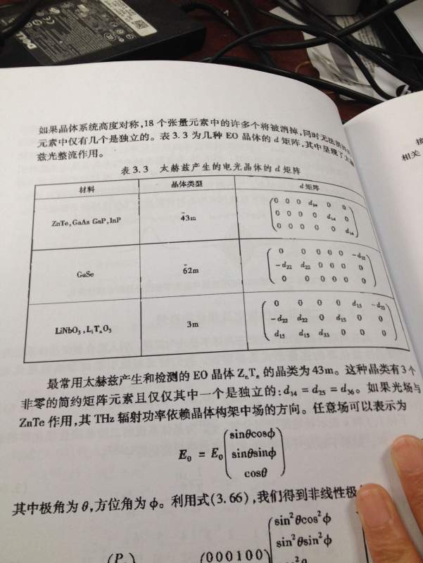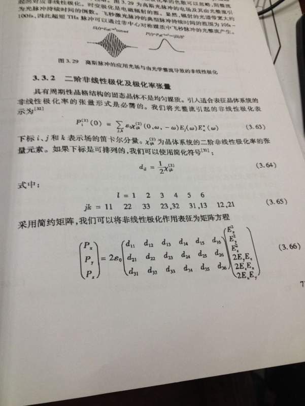 请问能否通过某些书籍能直接查阅到某种EO材料的二阶非线性极化率张量的矩阵表示,如下图。希望大神能给予帮助,感激不尽...