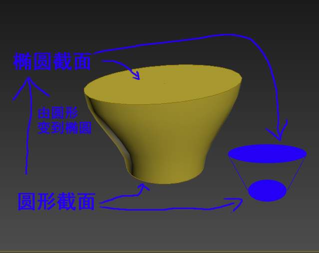 请问Gambit怎么放样?建立一个物体,其截面由圆形转变为椭圆形?