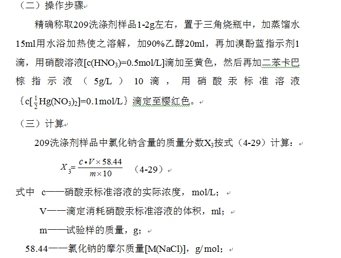 各位大神,分析方法求指教,N-油酰基-N-甲基牛磺酸钠,目前网上分析方法能找到的只有这一种,http://www.docin.com/p-74884788.html。但是还有点问题不太明白,希望大家有空的话帮我解答下。 乙醇不溶物含量测定时,氯化钠应该包括进去了,为什么在活性物计算公式里却还要再减去一遍用硝酸汞滴定的氯化钠,这样,氯化钠不是被减去两遍了吗?实在看不懂,但好多门户网站里上传的都是这篇文章,不知是否正确。如果有人做过这种物质的分析那最好了,谢谢大家。 a.png b.png c.png |