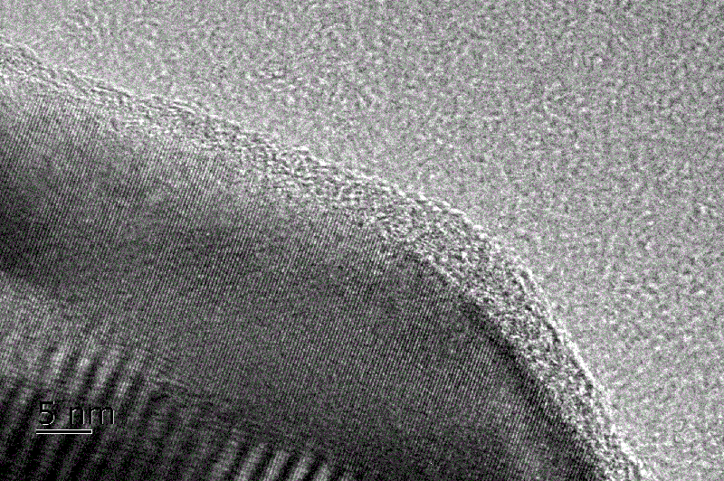 如图,拍的一个高分子聚合物包覆锂电负极材料LTO的TEM图片,有晶格条纹的应该都是LTO层,外层应该是高分子聚合物包覆层,但是LTO部分,左下角那里,晶格条纹呈现出周期性排列,我数了一下,8个晶格条纹成一个波纹,周期性的排列 。这个是怎样形成的,怎么解释这个现象? h3-0010.gif |