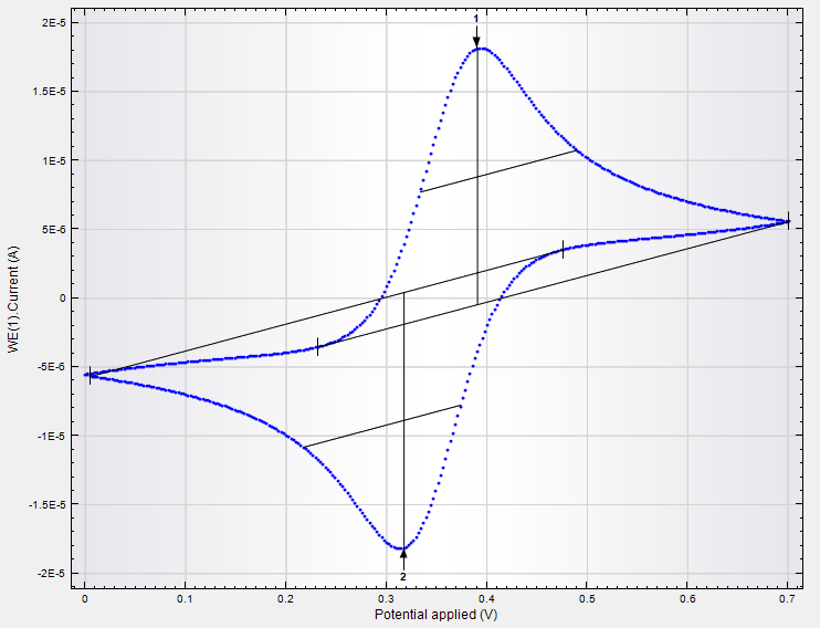 各位虫友,我的循环伏安反应,随着扫描速率的增加,峰值电流逐渐增加(和扫描速率的平方根成正比),但是氧化还原峰的差值也不断增加, 1.除了说明是扩散控制以外,怎样才能够说明是准可逆反应? 2.还有,我是用的是固体电极,循环伏安的峰值电流与固体电极的那些性质有关,比如说电阻,比表面积?是什么样的关系哪? 不同扫描速率下的循环伏安结果.png |