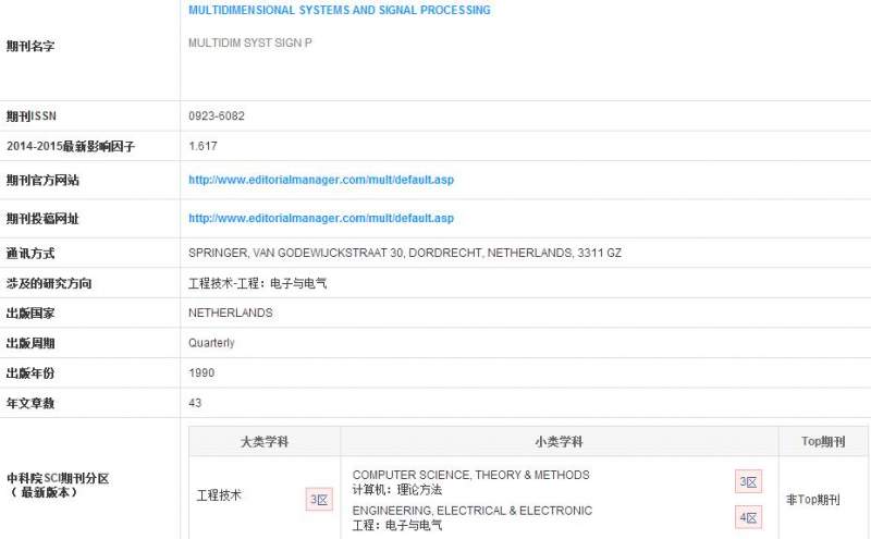 可否帮忙查以下两杂志的中科院分区 MULTIDIMENSIONAL SYSTEMS AND SIGNAL PROCESSING , Journal of Intelligent & Fuzzy Systems |