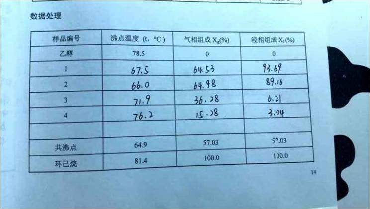 物化实验 环己烷—乙醇二元溶液的沸点组成图