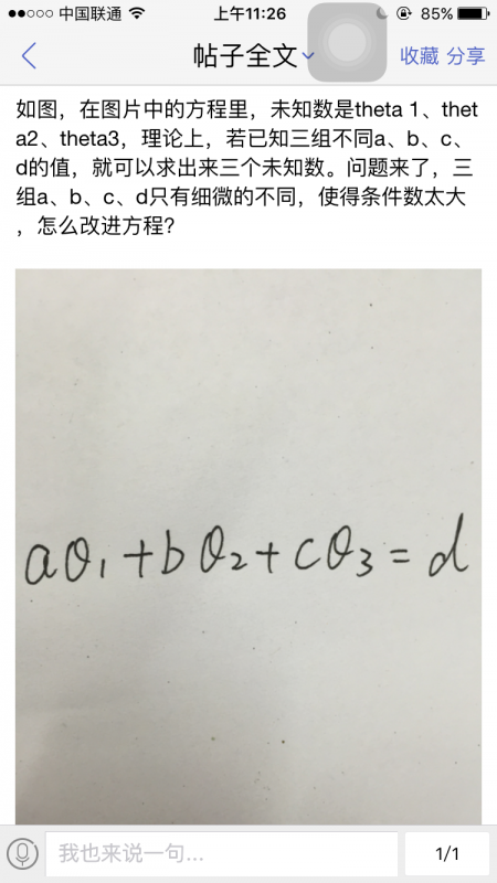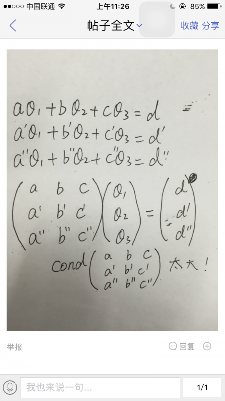 如图,怎么减少条件数?(在系数abcd变化很小的情况下求theta123)