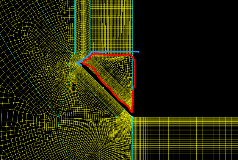 fluent msh文件时在进行 "separating interior zone to ..."的操作时卡住只能重启。 我网格里有两个壁面夹成锐角,那个区域有一个薄板,如图所示 当我把红色线圈出的面删去,并用蓝色线作为wall时就可以读入。 各位大神,这是因为原来两个面夹角的原因吗?还是有薄板的原因呢?有什么办法可以解决呢? ![]() |