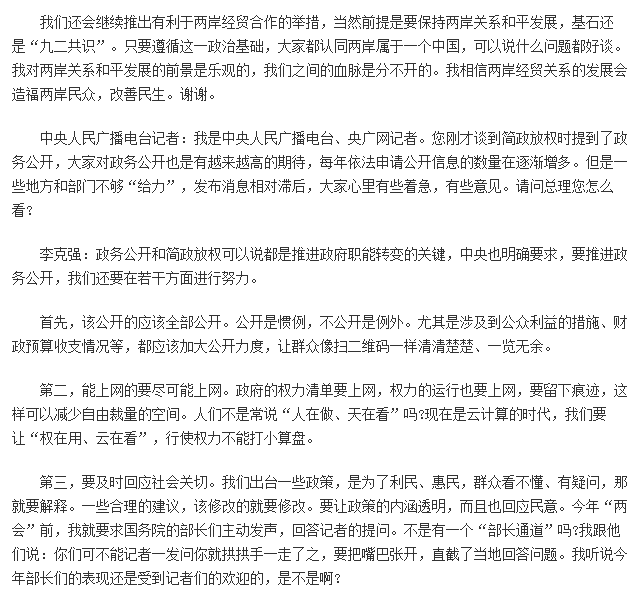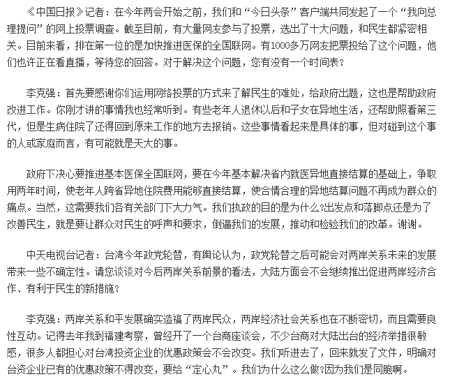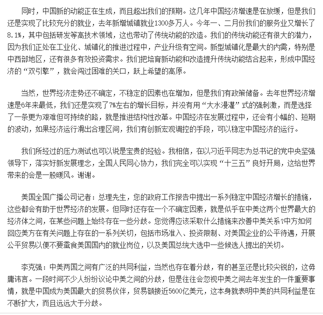 【紫玉专帖】在十二届全国人大四次会议记者会上李 克 强 总 理 答中外记者问已有2人参与