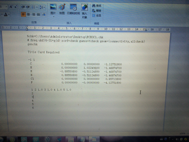 用gauss view画出一氯甲烷被氟取代的过程,其中过渡态CH3Cl...F的输入文件如下图所示,但是总是出错,请教大神们指点一下错误的地方及改进措施。 发自小木虫IOS客户端 |