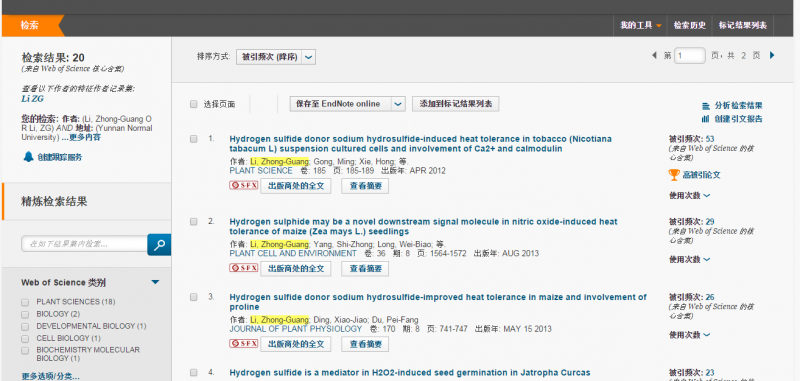 本人知道我的高引论文约2-3篇,但我的数据库查不了,请帮忙! 姓名:Li, Zhong-Guang或Li, ZG 地址:Yunnan Normal University 时间:2011-2016(按被引从高到低排列,前面2-3篇就是,有几篇一起给个截图就可以了)。 |